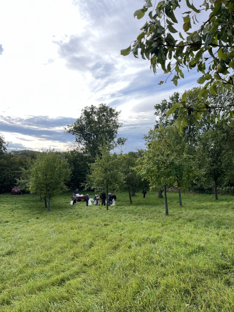 Besonders spannend: Die Kinder konnten vor Ort mitverfolgen, wie ihr gesammeltes Obst mithilfe einer handbetriebenen Obstpresse – betrieben durch Mitarbeitende des Naturparks – direkt gepresst wurde. Der daraus gewonnene Saft wurde mit sichtlicher Freude probiert!